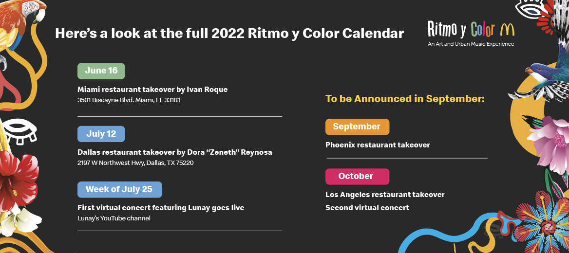 Fans are encouraged to visit www.ritmoycolormcd.com to register for the free virtual concert experiences, and learn more about the exciting artist collaborations and upcoming cultural moments.